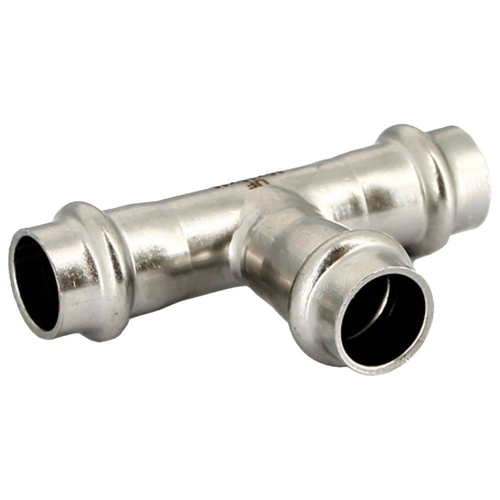 Данный соединительный элемент представляет собой пресс-тройник, предназначенный для современных трубопроводных систем. Конструкция разработана для надежного и быстрого монтажа методом прессования, обеспечивающего долговечное герметичное соединение.