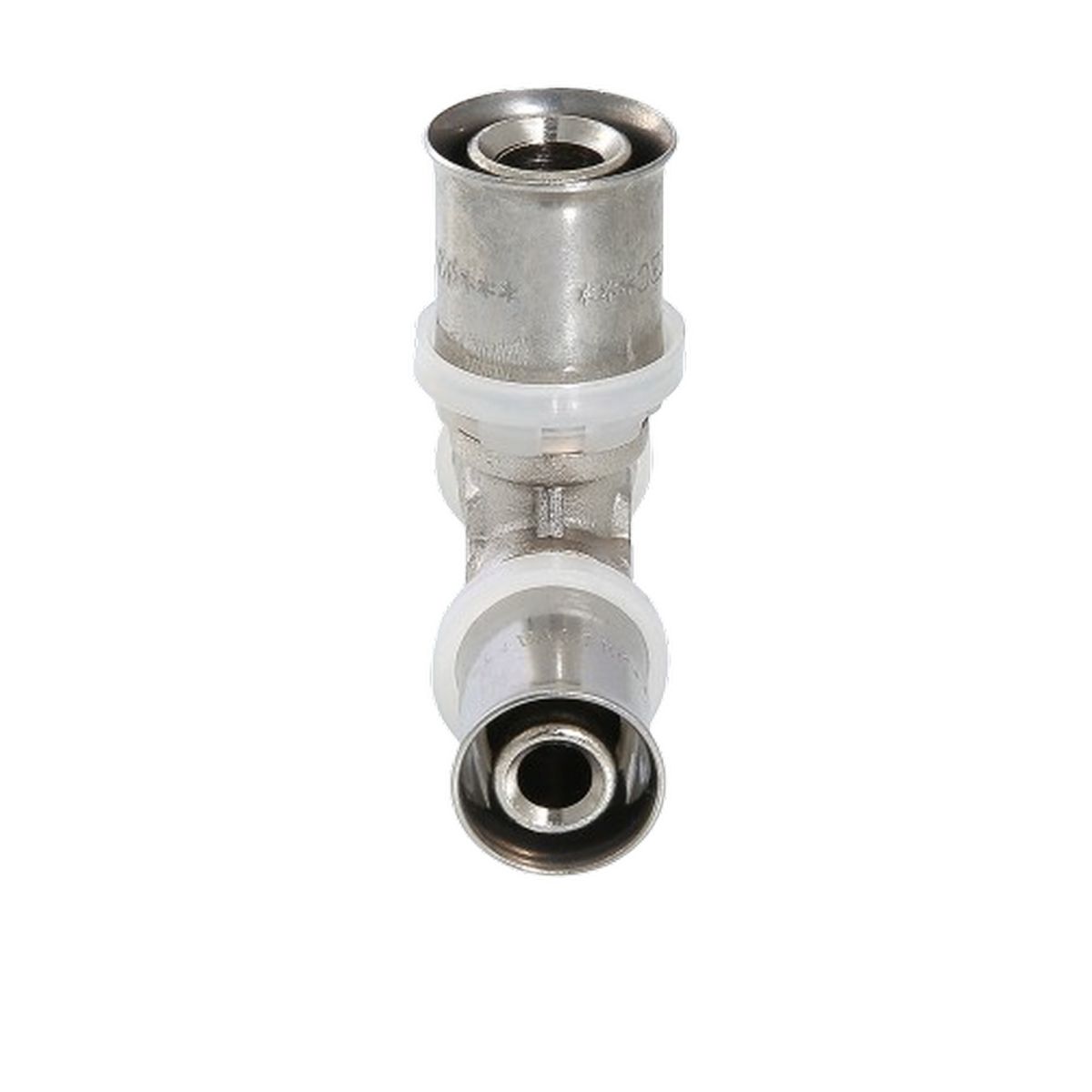 Пресс-фитинг – тройник предназначен для соединения трех труб – металлопластиковых, из сшитого полиэтилена или полиэтилена повышенной термостойкости. Корпус выполнен из сантехнической латуни марки CW617N, уплотнительные кольца штуцеров – из EPDM плотностью 1,22 г/см3, пресс-гильзы – из нержавеющей стали. Нейлоновая обойма выполняет функции фиксатора гильзы, направляющей для пресс-насадок и диэлектрической прокладки, прерывающей контакт между алюминием трубы и латунью корпуса. Конструкция пресс-фитингов VALTEC обеспечивает повышенную пропускную способность, надежность соединений, прочность и термостойкость. Монтаж фитинга производится пресс-инструментом с насадкой «ТН».
