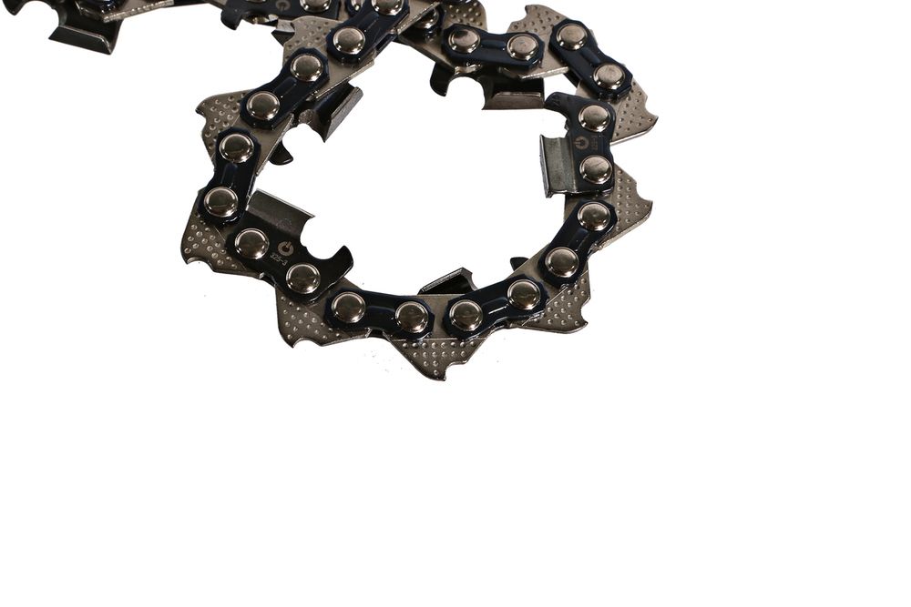 ChromeForce - Покрытие зуба промышленным хромом увеличивает прочность режущей кромки в 2 раза!* * по сравнению с цепями для хобби-техники StretchResist-Минимальное растяжение благодаря высококачественной закалке заклепки цепи LowVibration-Инновационная конструкция с системой гашения вибрации снижает ее воздействие на руки оператора на 25% MetalCase - удобный металлический кейс для хранения и транспортировки цепи, метизов.