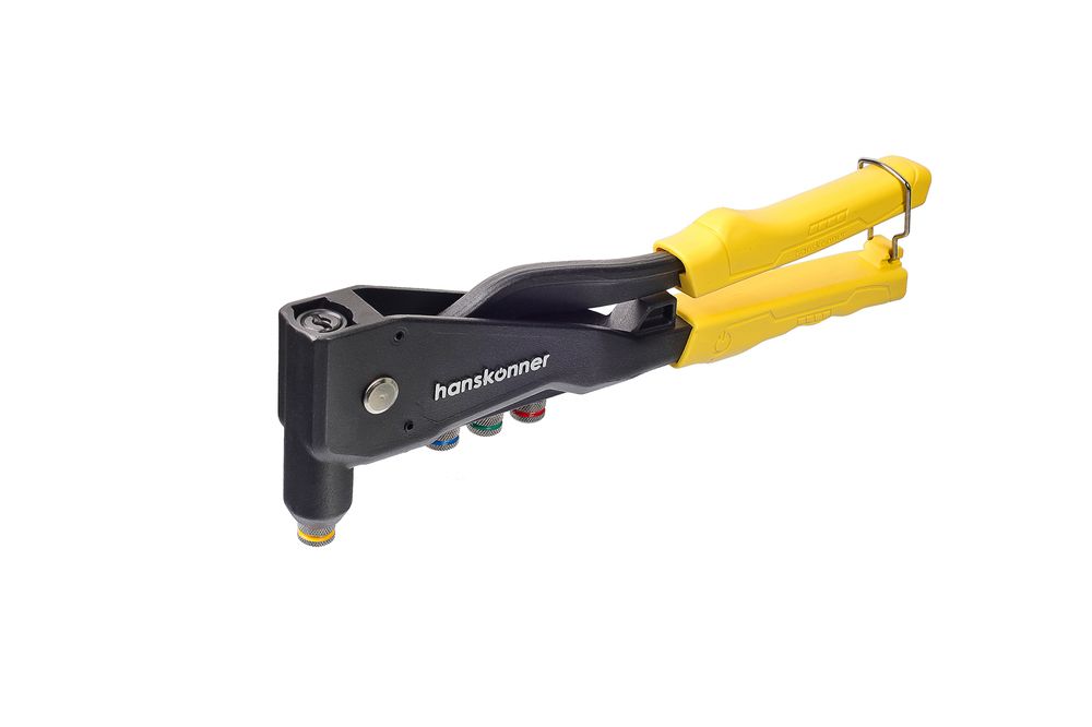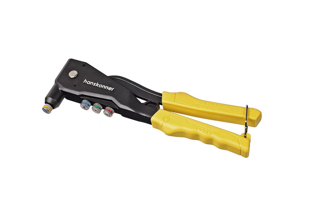 Литой усиленный заклёпочник применяется для надежного соединения металлических профилей, тонкостенных конструкций, плоских заготовок и деталей при помощи вытяжных заклепок из стали (2,4-4,0 мм), алюминия (2,4-4,8 мм) и нержавеющей стали (2,4-3,2 мм). Для установки крепежа не требуется особых усилий благодаря кованому изогнутому рычагу и корпусу из алюминиевого сплава.