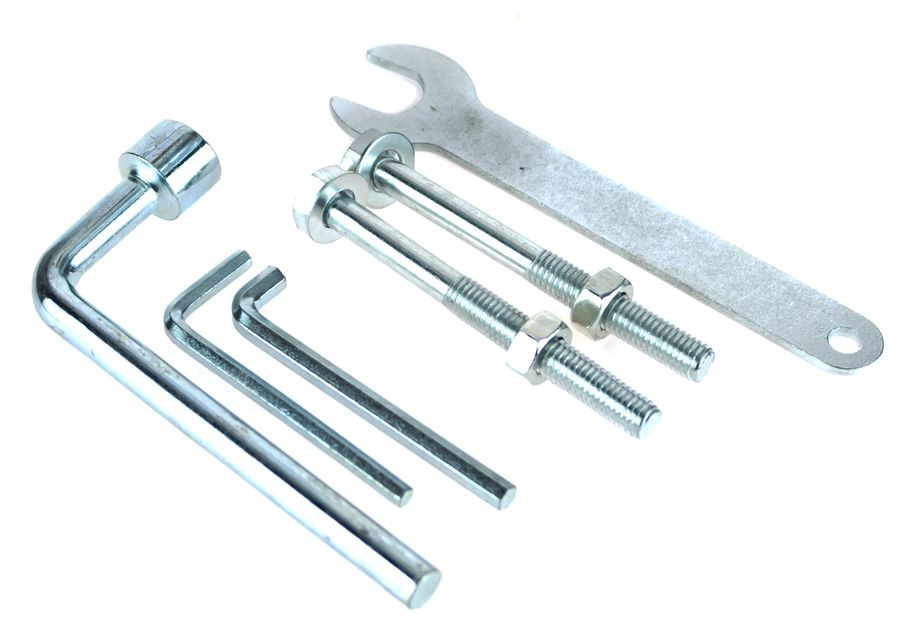 Станок, дополнительные угольные щетки (комплект, 2шт), гаечный ключ рожковый, гаечный ключ торцевой, ключ шестигранный (2шт), болт с гайкой и шайбой (2шт), инструкция по эксплуатации.